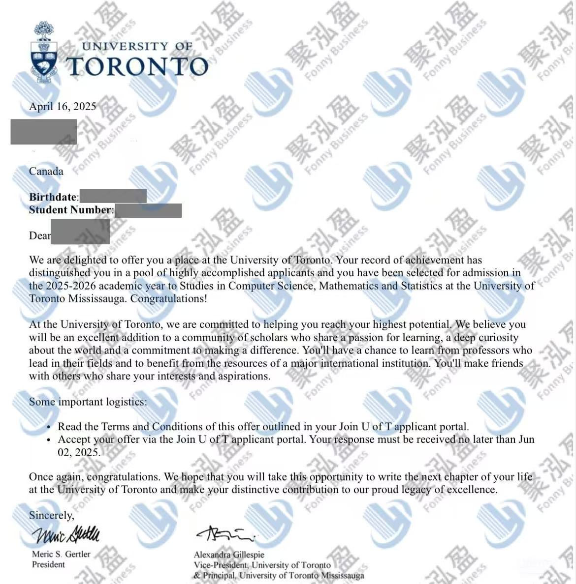 录取院校:多伦多大学