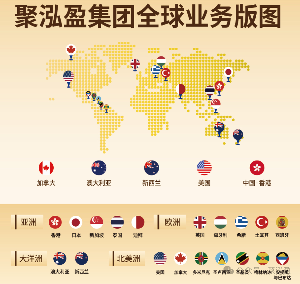 自2007年于加拿大温哥华成立,聚泓盈集团始终以“破除国界壁垒,赋能全球梦想”为使命,历经十八载沉淀,集团业务版图已成功覆盖加拿大、美国、澳大利亚、新西兰、迪拜、日本等多个国家及地区,并在深圳设立中国总部,构建起辐射全球的服务网络。