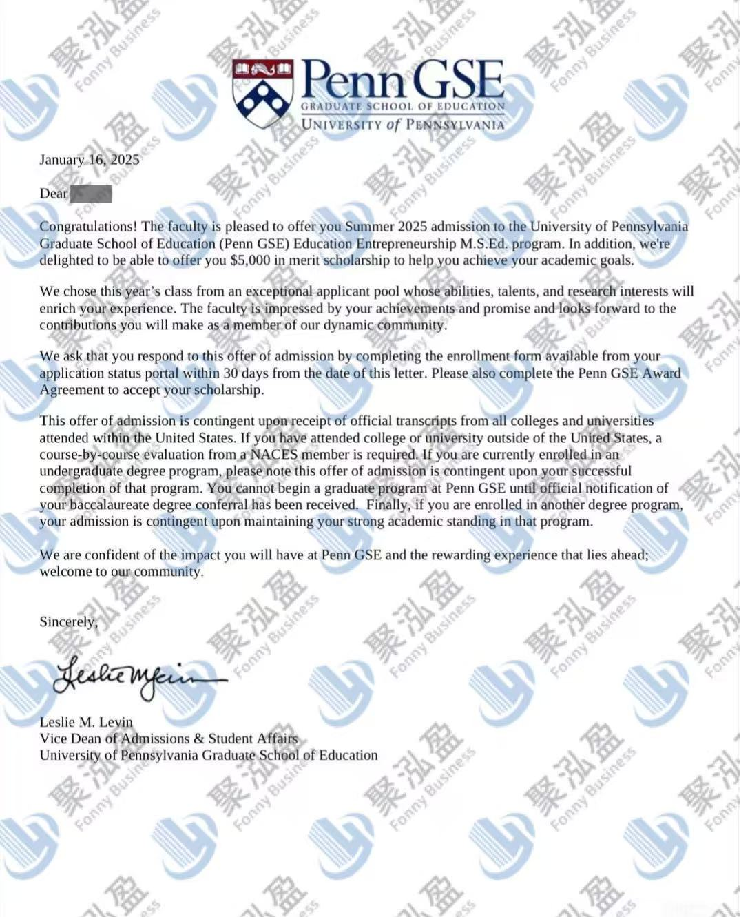 录取院校:宾夕法尼亚大学