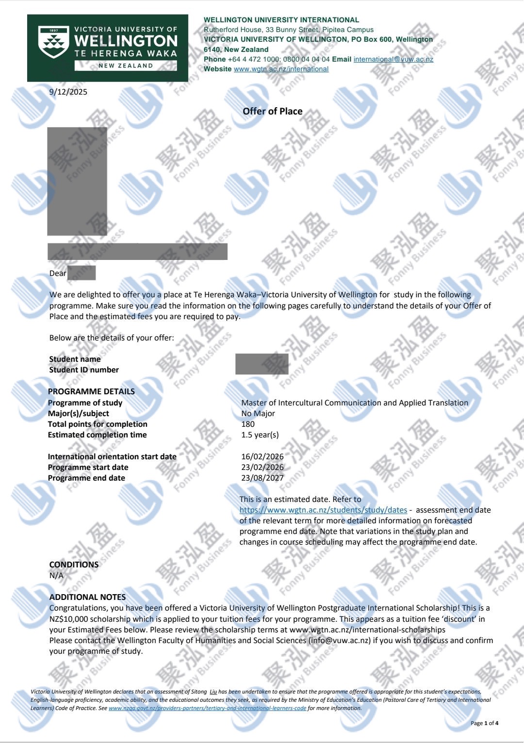 录取院校:惠灵顿维多利亚大学