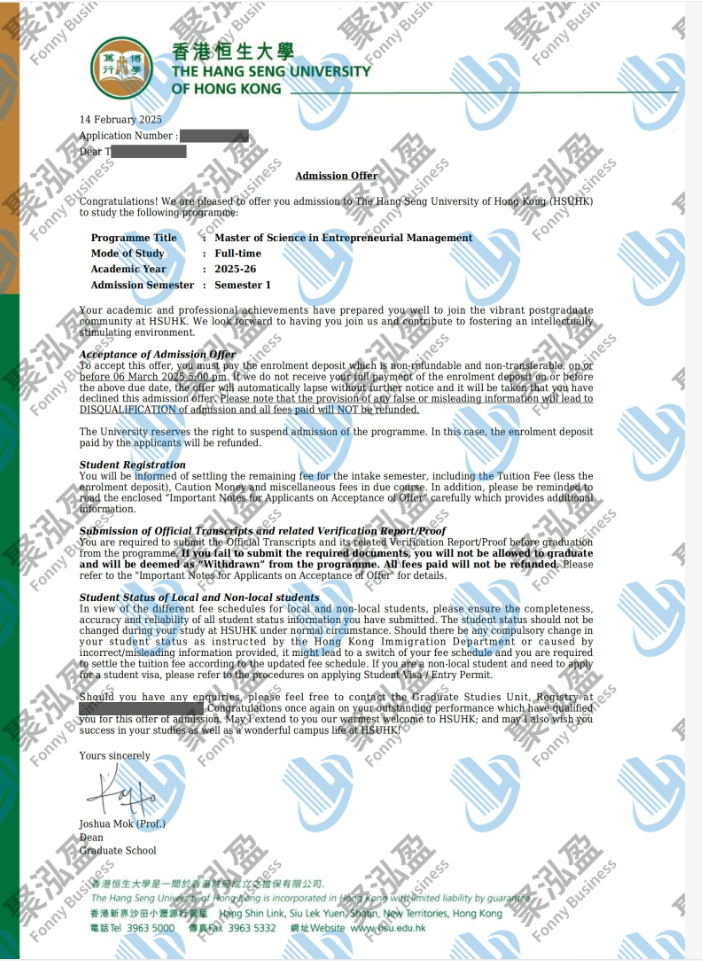 录取院校:香港恒生大学